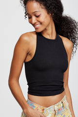 A perfect layering piece or wear alone as crop top. Rib fabric.