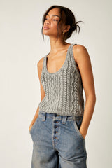 So cool and classic in a slouchy, relaxed fit, this staple tank features a scoop neckline and racer-style back with timeless cable knit detailing throughout for forever essential style.