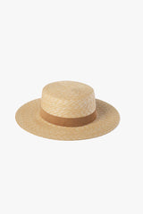- 100% natural wheat straw structured boater trimmed with caramel tonal soft 100% genuine suede band.