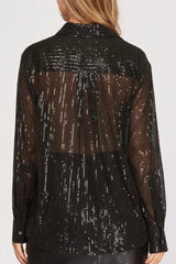 This sheer sparkly sequin button down in black will be a great staple to your closet. It is perfect for the holidays or to add a bit a sass to your favourite pair denim for a night on the town with your besties.