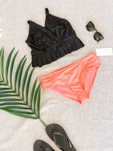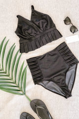 The "Marilyn" Pleated Ruffle Bikini Top in Black