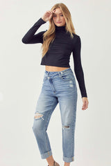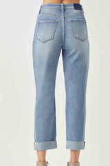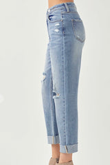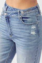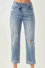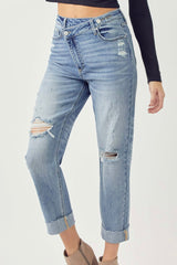 Boyfriend Cross Over Fly Distressed Cuffed Jeans