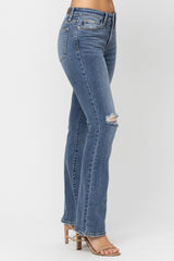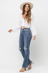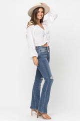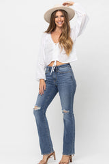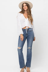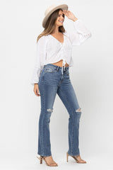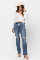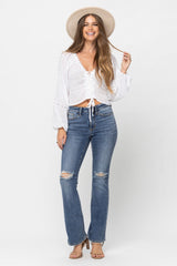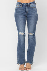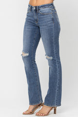 Judy Blue Mid-rise Medium Wash Distressed Knee Boot Cut Jeans
