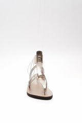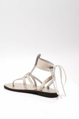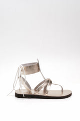 Strappy leather sandals featuring a wraparound ankle detail with a lace-up back; the partial vegetable-tanned leather sandal molds to your foot and softens with each wear