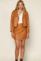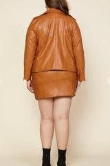 This is the softest most lux vegan leather skirt. Pair it with a cute sweater or button down tucked. It also looks great as a set with the matching moto style jacket available separately.