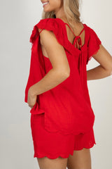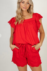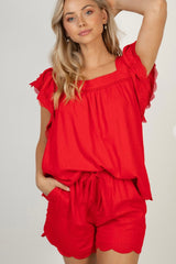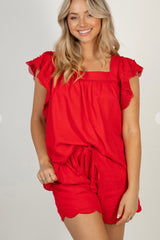 The cutest two piece linen blend short set in one of the hottest Color’s for this season. The color is not only perfect but the scalloped edge details on this set are making me want it in my summer closet now.