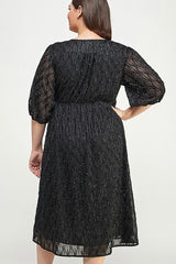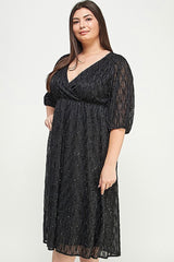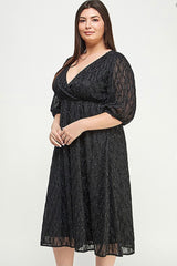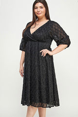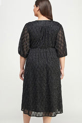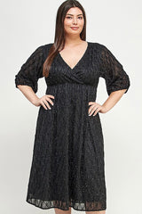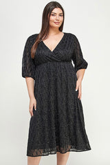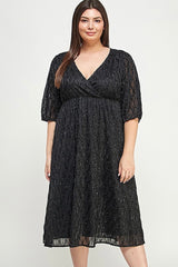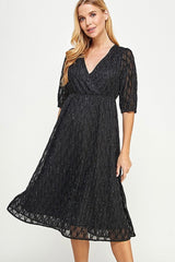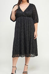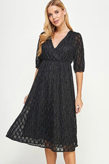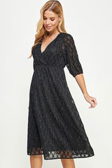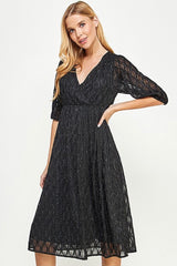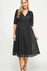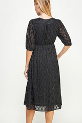 This black midi dress with a glitter texture, v-neck and empire waist  is perfect for that special occasion out.