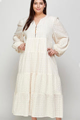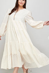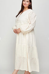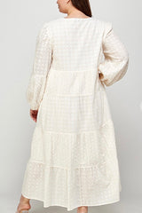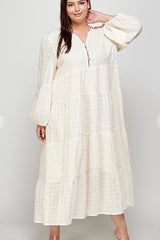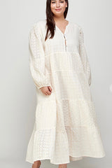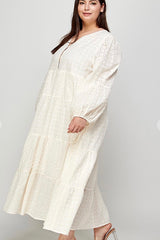 A summers dream maxi dress, cream in color with beautiful and dainty eyelet cotton. This dress is flowy and will keep you comfortable all day long.