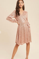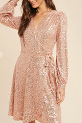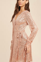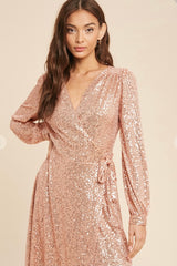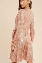 Get Holiday ready or prepare to ring in the new year in the cutest sequin wrap you ever did see in Rose gold. Long slight balloon sleeve. Fully lined with a soft comfortable lining.