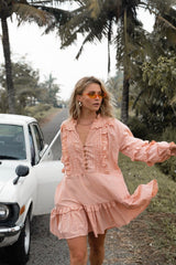 Venice Beach Gingham Smock Mini Dress in Peach - Size 4X and 5X