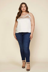 Super on trend with the "wear the lingerie as fashion" these lace and satin camis will be sure to please. Wear under a blazer or Cardi or on its own for a gussied up look any day or night. The perfect piece to dress up or down, perfectly pairs with a polished pair of denim.