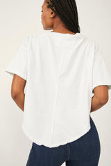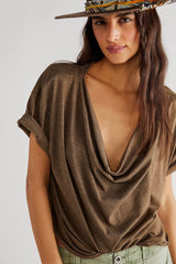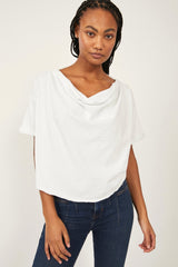 Designed in a stunning drapey silhouette, this forever timeless tee features a cowl-inspired neckline with dropped shoulders and rounded bottom hem for added shape.