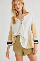 So cool in a color-blocked design, this essential henley top is featured in a slouchy, relaxed fit with dropped shoulders for added shape.