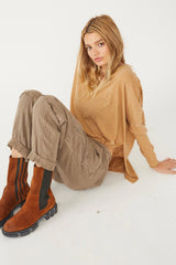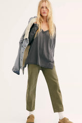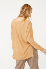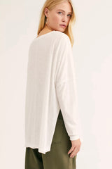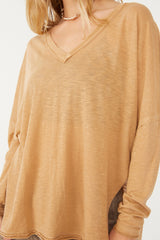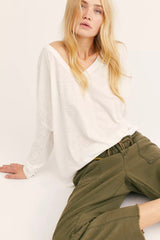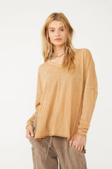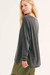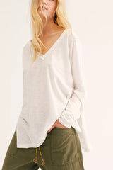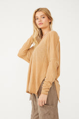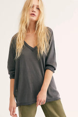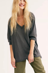 This slouchy V-neck top from the We The Free collection features exaggerated dropped raglan sleeves and side slits in an oversized slouchy silhouette.