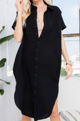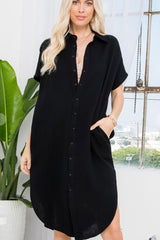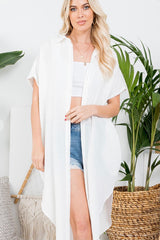 This cover-up is going to be your side all summer long at the pool or beach. Cute short sleeves, collared button down in cotton not only can be used as a cover-up but layer it up over shorts as a summer duster shirt.