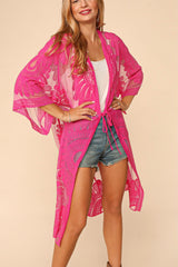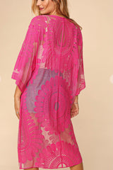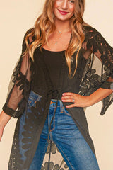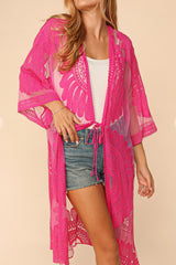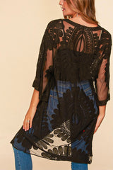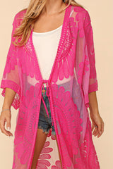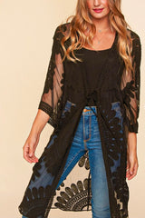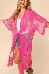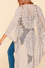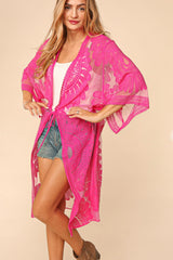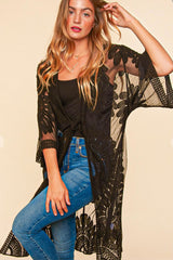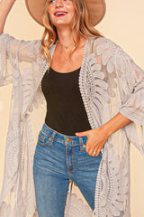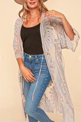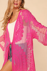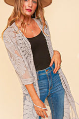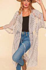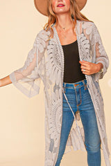 What summer boho dreams are made of. This midi length boho lace duster is perfect over a cute denim look or as swimsuit coverup at the pool.
