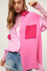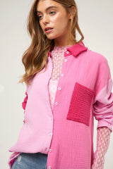 It’s all in the details with this cotton button down. The perfect amount of pink color block detailing adds a fun element to your outfit. This can be worn open over a swimsuit at the pool at the resort or with a favourite pair of denim pants or shorts.