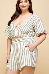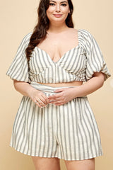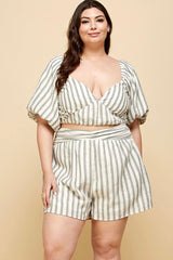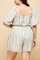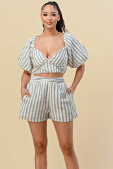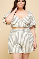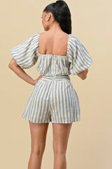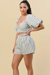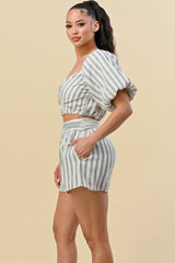 Do cotton stripes get any cuter than this? Short set with fitted waist band and back zipper closure on both shorts and top.