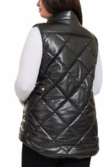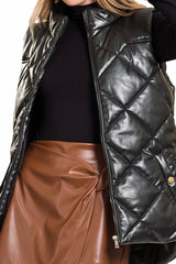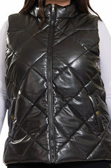 Chic and on trend in every way, this vegan leather quilted puffer vest will be a go to in your closet.