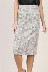 Ali Neutral Snake Skin Knee Length Pencil Skirt