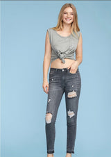 Ava Grey Distressed Released Hem Skinny Jeans - Last Pair Size 3
