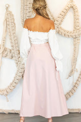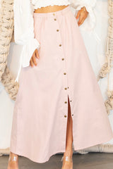 This cotton button down skirt is the prettiest delicate pink color, perfect for pairing with a denim jacket or a frilly white cropped topped. Stroll beachside or street-side this skirt will take you almost any wear this summer season.