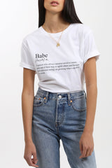 Brunette The Label’s "Definition of a Babe" Crew Neck Tee has a relaxed fit and pairs perfectly with being a babe.