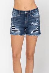 Dannie Distressed Patch Cutoff Denim Shorts - Last Pair Size 3X