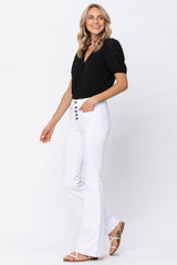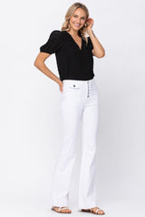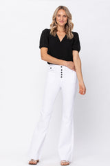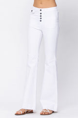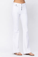 Ok if these are not the most perfect pair of white summer denim, I’m not sure what is. Flare’s are back and in everyone’s favourite brand of denim. These high rise exposed button fly, patch pocket flares will not disappoint. These are perfect for everyone, for a shorter inseam pair them with your favourite elevated shoe. Comfort and style in a pair of jeans, I’m in.