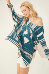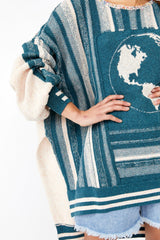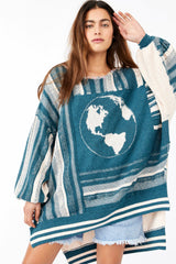So special in a striped design, this essential tunic top is featured in a classic oversized, slouchy silhouette with wide sleeves and earth graphic at front for forever cool, effortless style. The perfect beach night tunic.