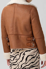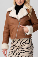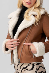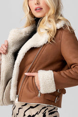 Sherpa Lined Sueded Moto Jacket in Camel - Last One Size L
