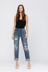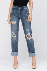 A slightly darker wash of the favourite Frankie Jeans, these are sure to be another hit for a night out on the town, strolling the beaches or lounging at home. These distressed denim are cuffed at the perfect length but they can also be worn uncuffed.