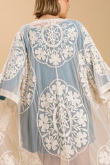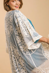 What summer boho dreams are made of. This boho lace duster is perfect over a cute denim look or as swimsuit coverup at the pool.