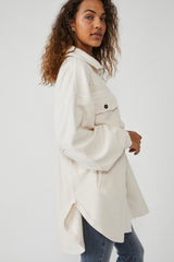 Soft jacket featured in an oversized silhouette. This shirt jacket or “Shacket” is the Shacket of Shackets just like the Ottoman Sweater is the sweater of sweaters. This is one of those pieces where I bet you can’t have just one.