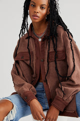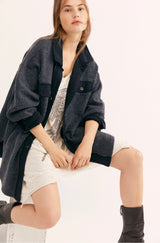 Super soft jacket featured in an oversized silhouette. This shirt jacket or “Shacket” is the Shacket of Shackets just like the Ottoman Sweater is the sweater of sweaters. This is one of those pieces where I bet you can’t have just one.