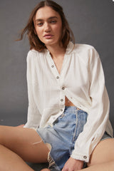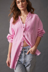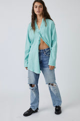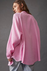 Crinkly lightweight buttondown featured in an oversized silhouette.