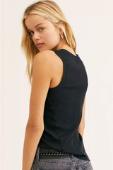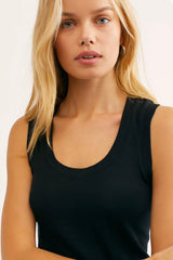 Essential ribbed tank top featuring a U-neckline and wide, muscle-style straps.